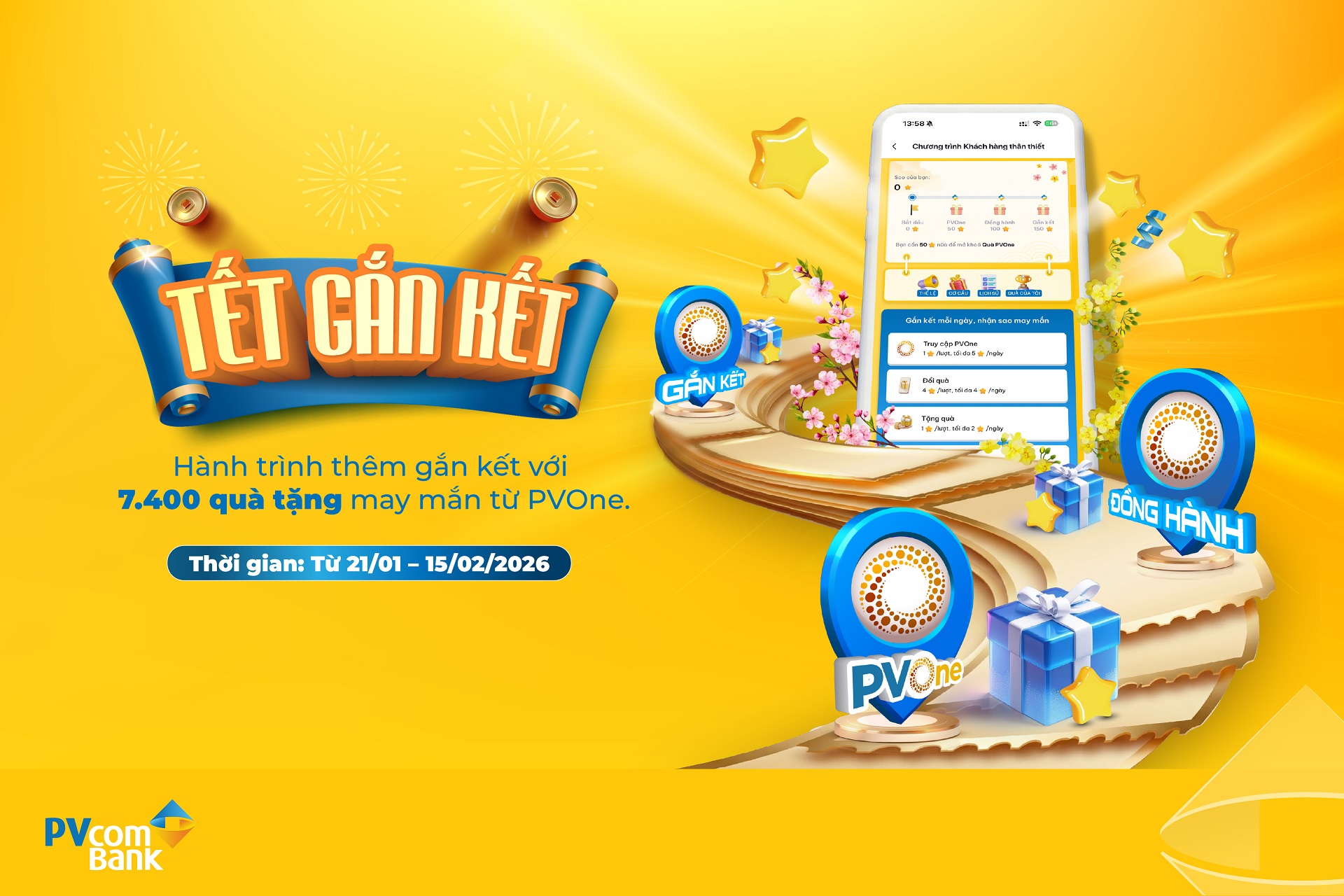 Nằm trong chuỗi ưu đãi thường niên Tết, chương trình khuyến mại "Tết gắn kết" là một trong những hoạt động nổi bật của PVcomBank nhân dịp đầu xuân năm mới 2026.